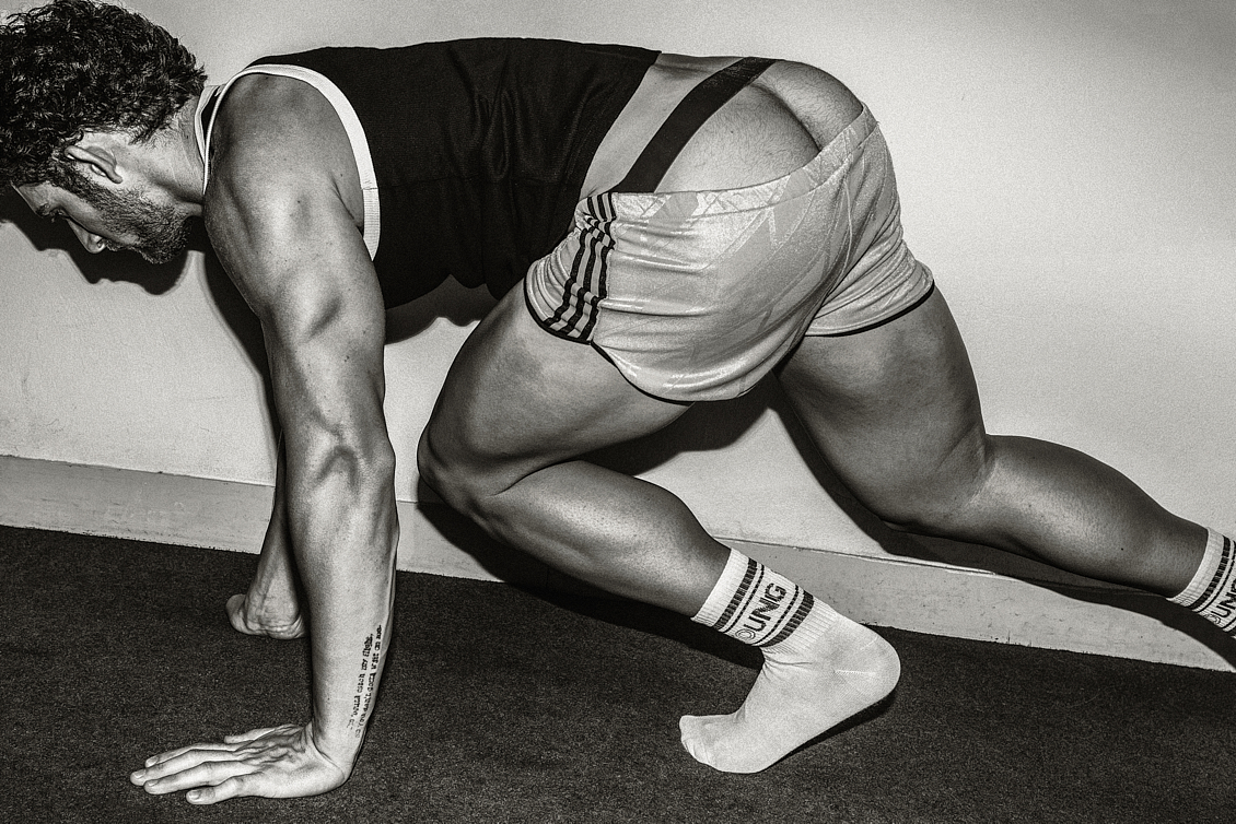 Simone Calisi at Models Milano photographed by Filippo Thiella, styled by Stefano Guerrini, stylist assistant Sveva Saraceni and groomed by Matteo Bartolini using Hanacure, Parlux and Mr. Smith Hair. Simone wears Archivio Guerrini, A.N.G.E.L.O. Vintage, Adidas, Antinoo Underwear, Calvin Klein, Dr.Denim, Levi’s, Gas. Random Identities by Stefano Pilati, Wrangler, Converse and Leonardo Valentini.